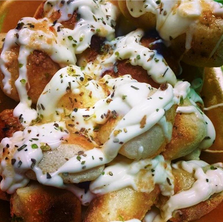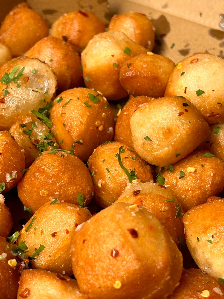 Golden fried dough balls in chillies, garlic & parsley £8.99