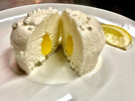 Tartufo al limoncello, a fresh and natural lemon gelato with a limoncello liquid heart, covered by a crunchy meringue brittle.Hazelnut and chocolate tartufo ice cream Coffee tartufoTartufo Bianco with zabaglione, with a heart of coffee Pistacchio Tartufo with a hearth of pistacchio, covered with pistacchio and almonds