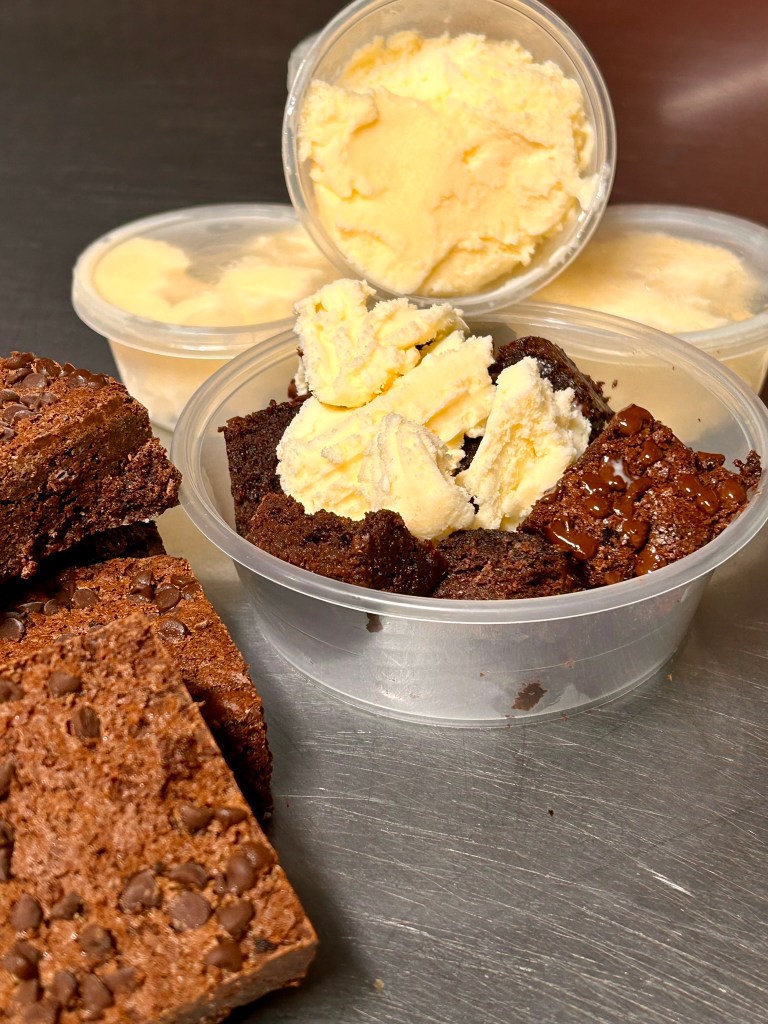 Milk chocolate profiteroles £3.99Tiramisu` new recipe £3.99Sicilian cannoli £4.50White chocolate profiteroles £3.99Warm chocolate brownies served with ice cream £3.99warm Carrot cake with added cream £3.99warm Apple flan with added cream £3.99warm Orange cake and chocolate with added cream £3.99Nutella dough ball £7.99