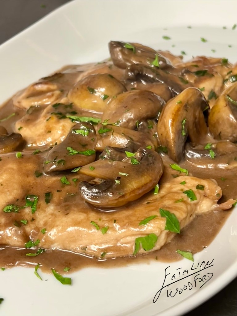 Chicken scaloppina with mushroom in Marsala wine sauce