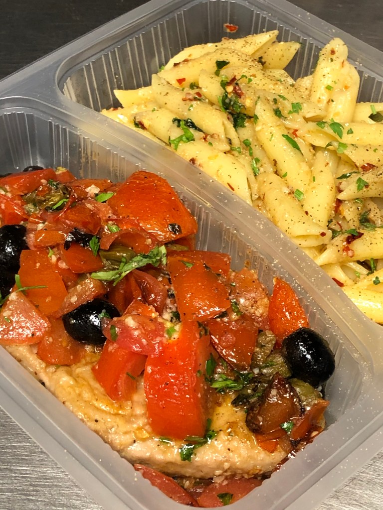 comes with penne Napoli, chips and salad