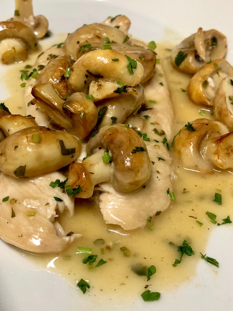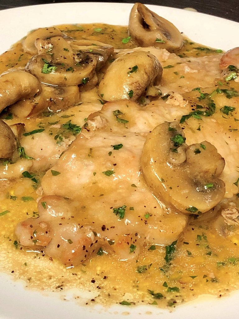 Chicken scaloppina with mushroom in Marsala wine sauce